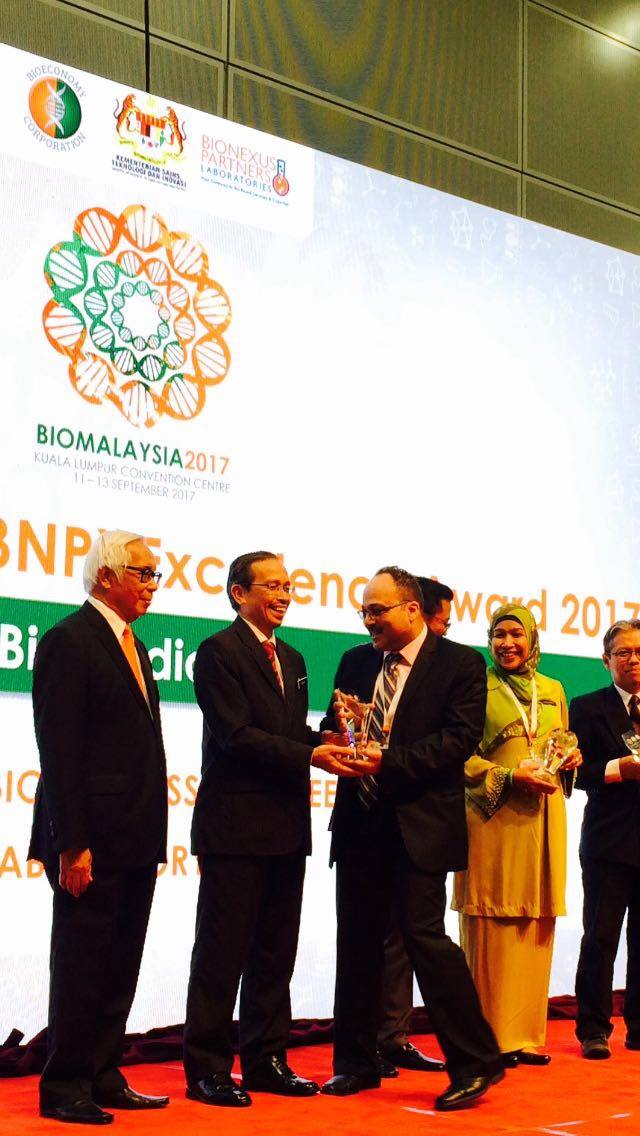 Prof Hesham Enshasy receiving the award for Best BNP Lab under the Bioindustrial Category
