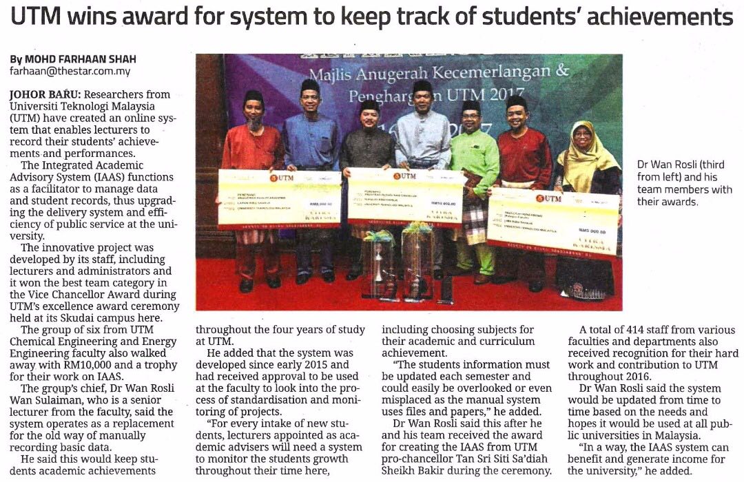 FCEE wins award for system to keep track of students achievements by webmaster | May 19, 2017 | award, Events, News source: The Star