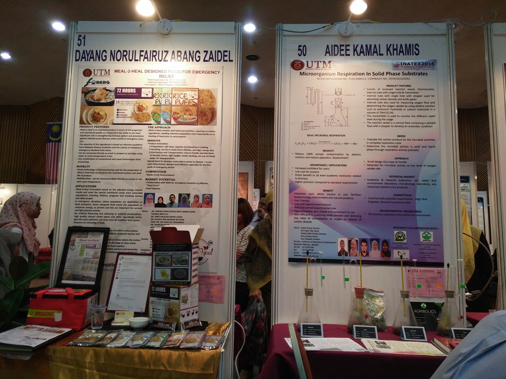 INATEX is one of the University’s program in Research and Development organised by Research Management Center (RMC). INATEX is an R&D exhibition that showcases UTM inventions and inovations. INATEX also acts as a competition for products develop by UTM researchers. The purpose of INATEX is to promote the research findings or products to the public by exhibiting the creative inventions and innovative products from UTM researchers. INATEX is also is a platform for UTM researchers to commercialize their research results at a higher level and to form a global network of intellectual partners together with industry. Therefore, researchers should always equip themselves with knowledge and skill and be familiar with the technology and new discoveries in the field of their expertise.