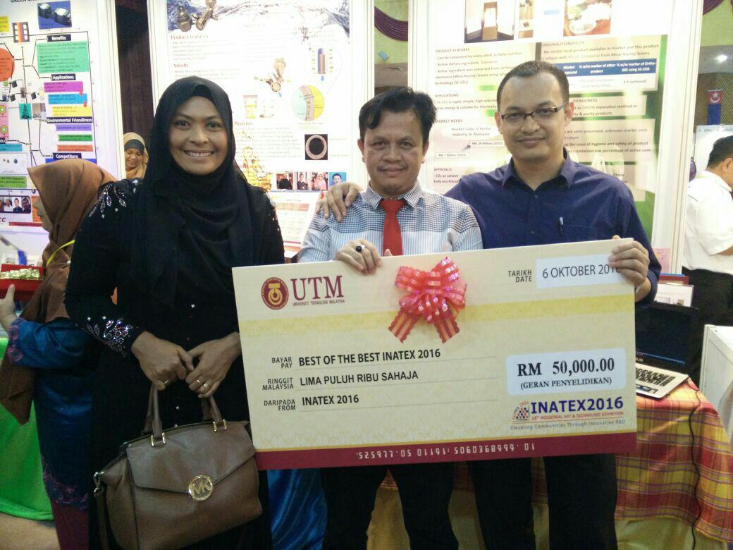 Assoc. Prof. Dr. Mohd Azizi Che Yunus won the Best of the Best Award in Inatex 2016, bagging RM100,000.