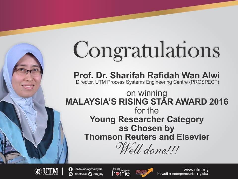 and Prof Dr. Sharifah Rafidah Wan Alwi has won the Young Researchers Category