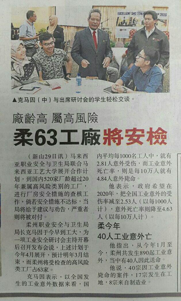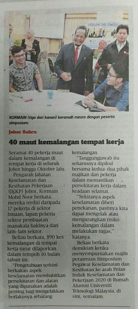 Recently, the One-Day Symposium on Excellent SHO towards OSHMP 2020 that was held on 29 November 2016 was in the local newspaper! The symposium was held at Dewan Alumni, UTM Skudai, Johor has received many audience.
