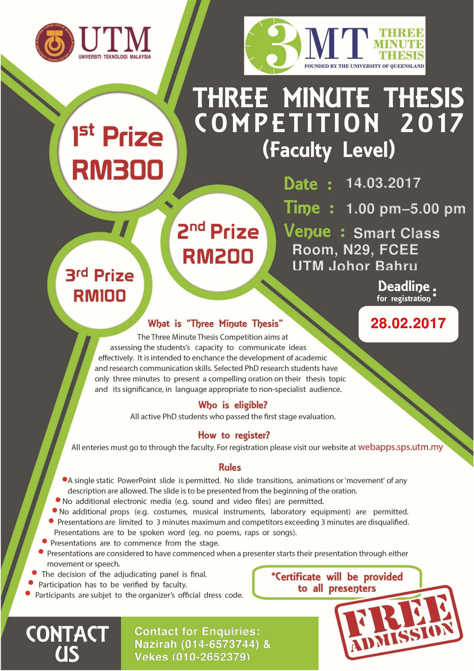 THREE MINUTES THESIS (3MT) COMPETITION 2017 – FACULTY LEVEL