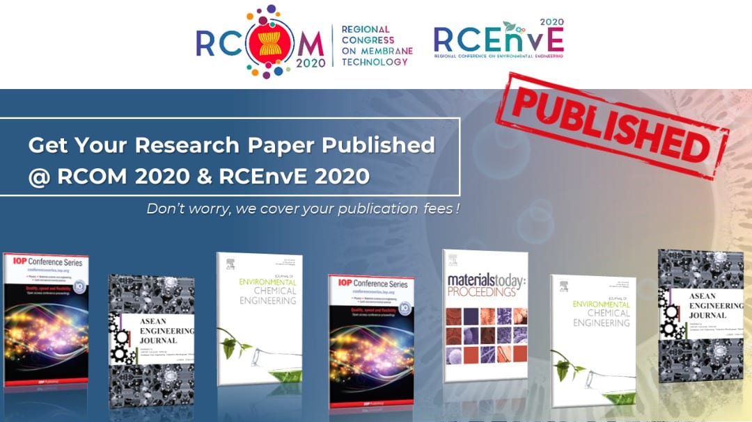 “The Regional Congress on Membrane Technology 2020 (RCOM 2020) and Regional Conference Environmental Engineering (RCEnvE 2020) is a premier forum for the presentation of new advances and research results in the field of membrane and environment. The conference will bring together networks of professionals and researchers worldwide in various disciplines to discuss current technology development in different field and valuable information of the latest research activities in maintaining the sustainability of the environment for the future”